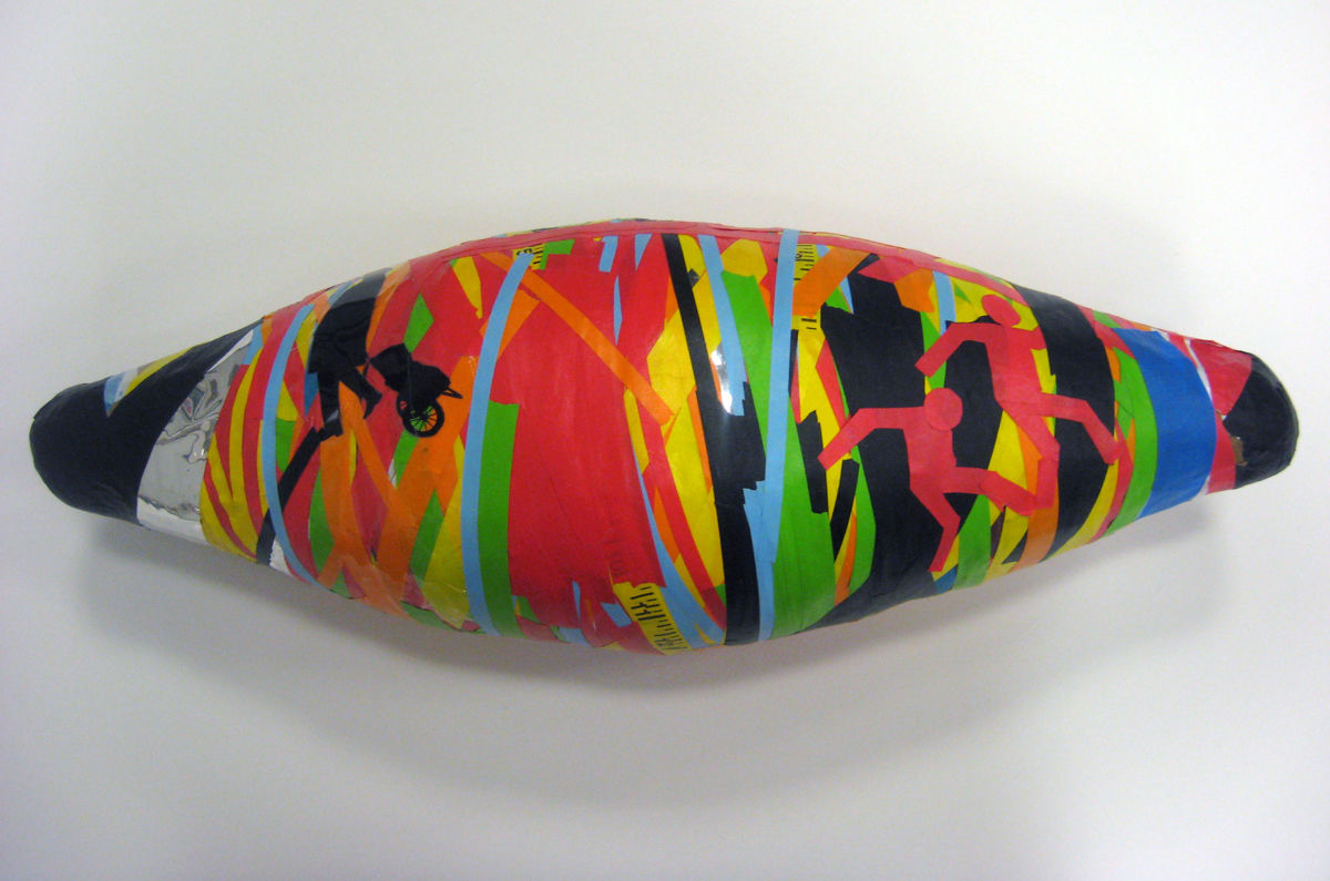 Nic Hess. Spindle Implosion (Automatic Crash Response), 2009. Tape. 6 1/2 x 20 1/2 x 7 in. (16.5 x 52.1 x 17.8 cm). Hammer Museum, Los Angeles. Purchase.