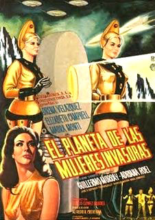 The female inhabitants of the planet Sibila want to invade Earth, but in order to breathe the Earth’s atmosphere for more than a day, it is necessary to create breathing adaptors from the lungs of living humans. A vanguard force comes to Earth seeking human specimens. Landing near an amusement park on Earth, they manage to disguise their ship as an innocent ride, thereby trapping several Earthlings and bringing them to Sibila. This sets up an intergalactic confrontation that pits rational, masculine, scientifically advanced Mexico against hysterical, overdressed and over-coiffed, feminine outer space. Seguro, it’s clear what has to happen. (35mm, b/w, subtitles, 85 min.)