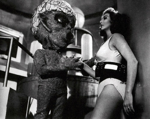 The last man on Venus has died. Beta and Gamma, two Venusian women, have been sent on an intergalactic mission collecting bizarre male specimens from throughout space. And a monstrous collection they are too, all scales and fangs and exposed brains. An emergency crash landing in Chihuahua, Mexico puts the Venusian women face to face with handsome Laureano and his brother Chuy. Beautiful Beta is enthralled by Laureano’s good looks and sweet singing, but Gamma is set on conquering Earth, using her captive “men” as soldiers. Laureano takes it all in stride, an attitude befitting this Norteño. But can he prevail against the extraterrestrial goons? Or the Venusian beauties themselves? (We haven’t mentioned their vampire-like bloodsucking… but this should give you enough to work with.) (35mm, b/w, subtitles, 81 min.)