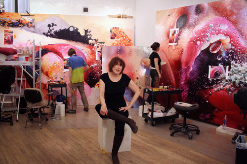 Marilyn Minter’s work has been featured in numerous exhibitions, including a solo show at the San Francisco Museum of Modern Art in 2005 and the 2006 Whitney Biennial. In September, the Contemporary Arts Center Cincinnati and La Conservera in Murcia, Spain will present installations of her work, including large scale projections of her video Green Pink Caviar. Green Pink Caviar was featured in Madonna’s recent European tour and will grace digital billboards on Sunset Boulevard as part of a public art project that coincides with her first exhibition at Regen Projects in October.
