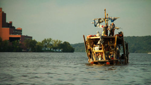 A dreamlike, meditative journey down a river flowing both ways with the tides, Flood Tide follows real-life, handmade boat-sculptures and their crews as they drift past empty new condominiums, explore crumbling castles, swim in iridescent quarries, and are occasionally hindered by torrents of rain or groaning motors. Interpreting and responding to extended footage not in the narrative version, Dark Dark Dark perform live with the film onstage following their pre-screening musical set. 7PM cash bar. 8PM screening/performance. (2010, 50 min. Dir. Todd Chandler, cinematographer Ava Berkofsky)