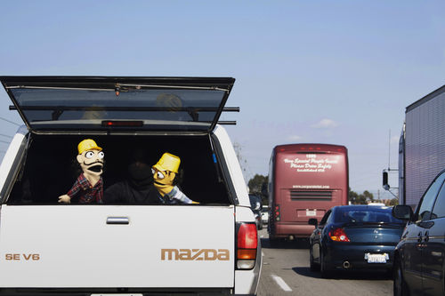 Superclogger marks Los Angeles-based artist Joel Kyack’s first large-scale public project. Conceived with Providence-based artist and bike mechanic Peter Fuller and developed out of Kyack’s interest in chaos, performance, and the relationship between individual will and collective control, Superclogger will present various puppet shows to drivers caught in afternoon traffic jams from a mobile theater housed in the back of a nondescript white pickup truck. Broadcasting soundtracks discretely to the viewer’s car stereo, Superclogger aims to briefly halt the progression of chaos by temporarily drawing the audience out of the commute experience and placing them within an intimate space of engagement and performance that highlights their own individual presence within the broader structure of the traffic jam.