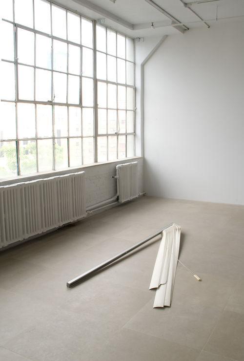 Gedi Sibony often uses basic found materials associated with architecture or construction, including drywall, wood, cardboard, paint, and carpet. Hung from ceilings, draped over doorways, slumped or leaned against walls, Sibony’s work is as much about its arrangement in space as it is about the objects themselves. Sibony alters our perception of our surroundings, encouraging us to view both the spaces that we occupy and the materials used to make them in a different way.