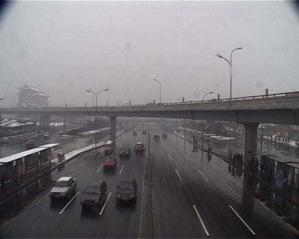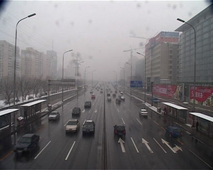 Beijing: The Second Ring is a document of the two opposite views of traffic flow on 33 bridges along Beijing’s Second Ring. The artist records a single frame for one minute for each view on the bridge. The entire piece is made up of 66 segments, entirely shot on cloudy days. The Rings—or traffic loops— are important urban structural elements of Beijing. The circular rings govern the whole spatial organization of the city’s urban fabric. Like the Chang’an Boulevard piece, the act of recording is minimal, focusing on the process of pure observation and the nature of time. The film documents the historic aspects of the city, modern development, its nearly 13 million people, mass transport, and the urban reality that defines Beijing. (2005, Video, 1 h 6 min)