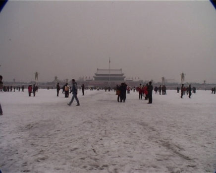The film is a record of Chang’an Boulevard at a sequence of measured distances along its 45 kilometers length from east to west. At each measured increment, the artist records a single frame for one minute. The whole film is composed of 608 one-minute segments. The length of the film is 10 hours and 13 minutes. Beijing, the capitol of China for over 600 years, has a prime architectural orientation and order to its urban fabric. The structure of the city is divided in half by Chang’an Boulevard along the east-west axis. After 1949, Chang’an Boulevard and the heart of the city, Tiananmen Square, became China’s main cultural political center and landmark.