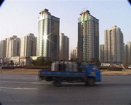 The film records the city through the transformation of urban landscape. The act of recording is minimal: it is filmed in a peaceful, quiet manner, focusing on the nature of time and pure observation. The work reveals Beijing as an organic whole, capturing the rhythms of the city, its social structure, cityscape, socialist-planned economy, capitalist market, political power center, commercial buildings, and industrial units as pieces of a multi-layered urban collage.