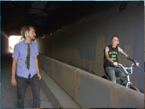 The Time-Eaters will be preceded by a short piece from 2004, The Fudgesicle, a solo performative video in which Dodge, playing a fudgesicle, parries with an unseen interlocutor in a stripped-down, monochromatic setting. The deceptively puerile premise eventually serves as a container for an effervescent (and existential) meditation on shape, legibility, and the limits of articulation. (2013, Dir. Harry Dodge, 9 min. 23 sec.)