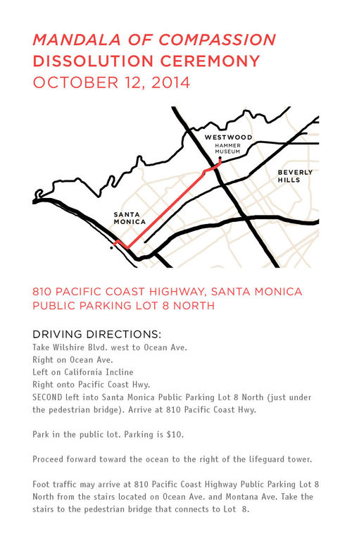 From 11AM to 3PM, visitors will be able to reserve same-day timed-tickets for a 10 minute window to view the completed mandala. Live-streaming of the Mandala will be available in the Billy Wilder Theater throughout the day and will allow an overhead view of the final sweeping of the sands.