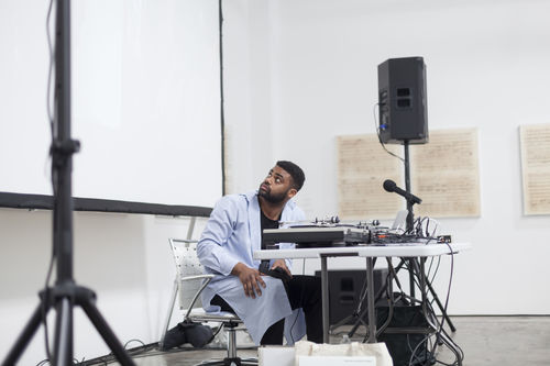 New York-based artist Kevin Beasley (b. 1985) transforms personal and familial artifacts into sculpture and sound performances, influenced by house music, hip hop sampling, and the post-industrial decay of once prosperous urban centers, such as Detroit, where Beasley lived for a number of years. Beasley is a recent alum of the Studio Museum in Harlem’s residency, and participated in the 2014 Whitney Biennial. He has performed and exhibited at the Museum of Modern Art, New York; Walker Art Center, Minneapolis; the Queens Museum, New York; the Studio Museum in Harlem, New York; the Museum of Contemporary Art, Cleveland; and the Institute of Contemporary Art, Boston, among others.
